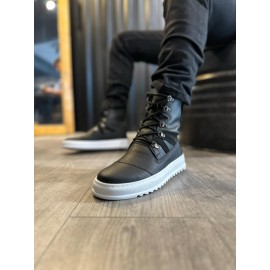 K&A Yüksek Taban Ayakkabı B-022 Siyah (Beyaz Taban)